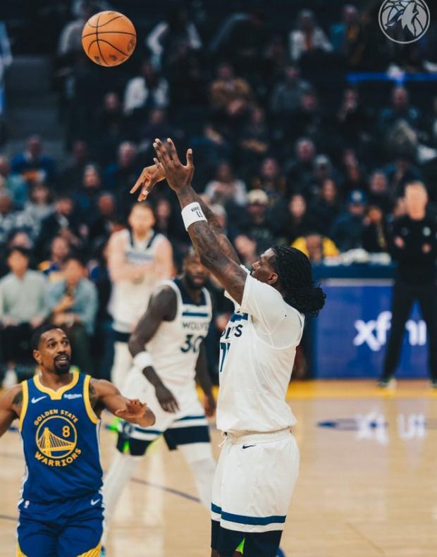 这一个比赛日,森林狼奔赴金州,在大通中心球馆挑战勇士,两支球队此战打得难解难分,库里在队友状态不佳的情况下,靠着个人的暴走,一直在为勇士续命,但终究是双拳难敌四手,眼睁睁看着森林狼以127-120带走了胜利,完成了对勇士的五连斩。