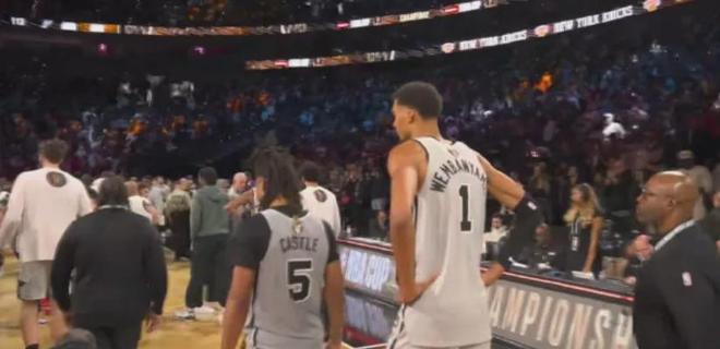在这个过程中,文班亚马并没有太多的发挥,他替补出战,上半场就拿了4分4篮板。